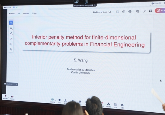 推进学院科研国际交流与合作,6月22日数理与统计邀请澳大利亚科廷大学汪崧教授为广大师生作了题为“Interior penalty method for finite-dimens-ional complementarity problems in Financial Engineering”的学术报告。