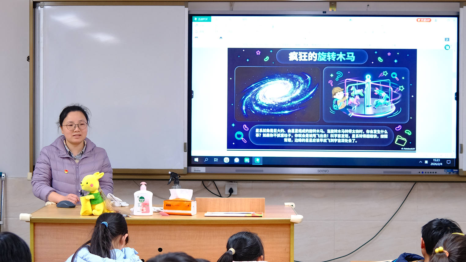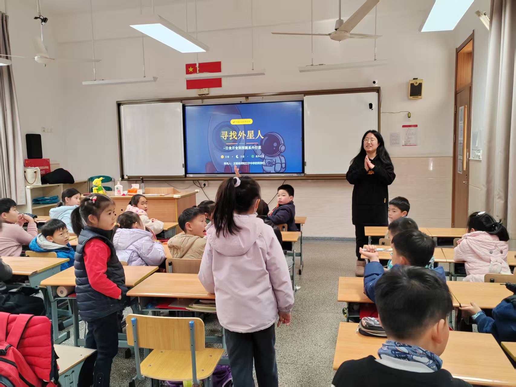 上海工程技术大学数理与统计学院王颖副教授带领长寿路街道爱心寒托班的孩子们踏上一场《寻找外星人》之旅,吸引了孩子们极大的兴趣,都忍俊不禁积极发言,畅谈自己想象中的外星人模样,天文科普课堂成为孩子们梦想与科学交织的互动梦想乐园。