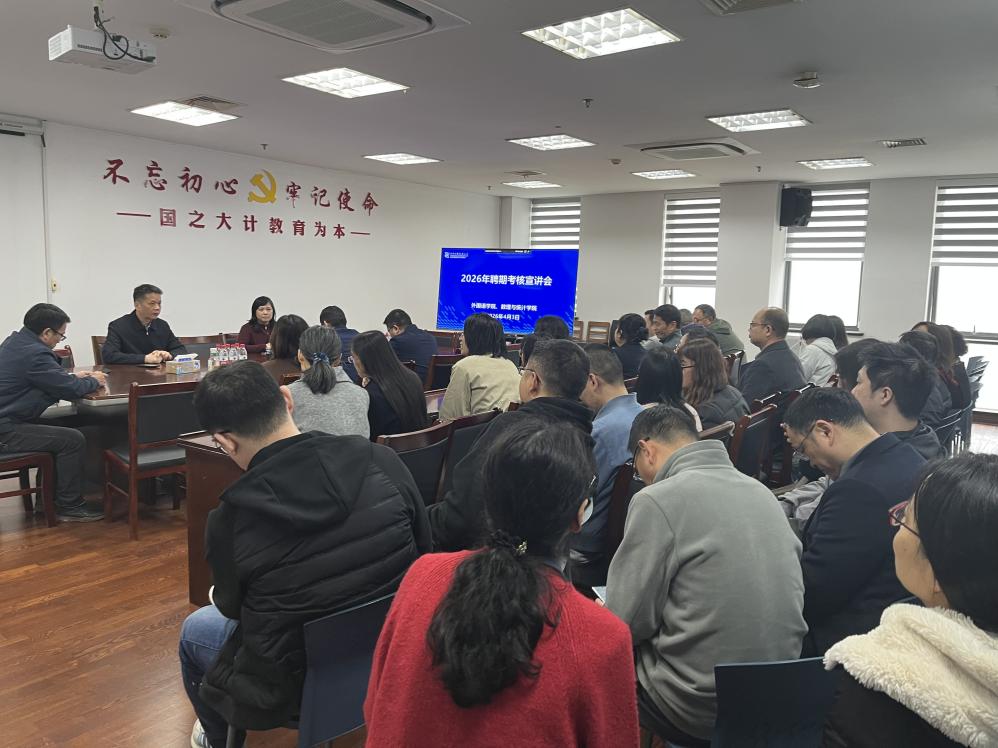 深入开展树立和践行正确政绩观学习教育,一体推进学查改,为教师办好实事,解决教师急难愁盼问题。4月3日下午,数理外国语联合党委邀请人事处副处长郑凌莺赴学院开展2026年聘期考核宣讲会,就今年聘期考核相关政策进行详细解读。外国语学院、数理与统计学院的党政班子领导以及参加今年聘期考核的教师参加了本次宣讲会,张朝民书记主持会议。
