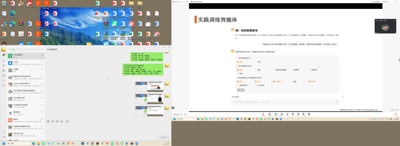 2025年10月8日,数理与统计学院“人工智能赋能科学研究”线上主题讲座成功举行。本次讲座由上海萌泰数据科技股份有限公司董事长李军博士主讲,为师生深入剖析了人工智能技术如何重塑科研与教育模式。