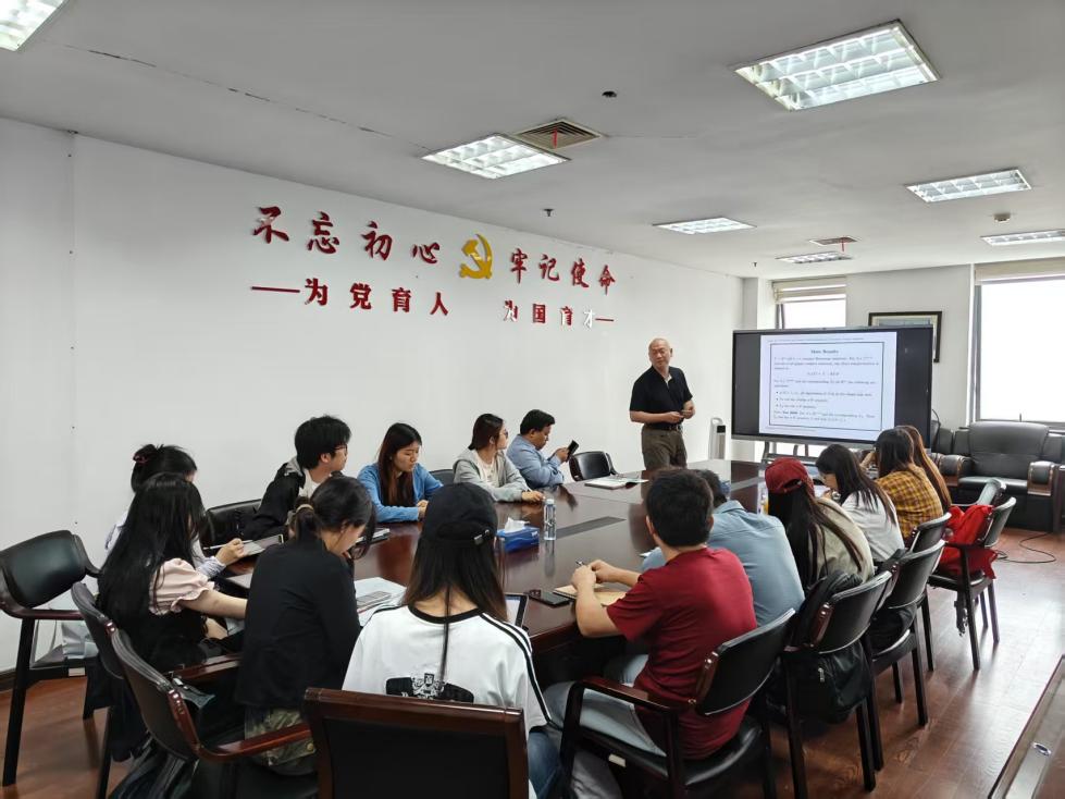 On the afternoon of June 12, Professor Jiyuan Tao from Loyola University Maryland delivered an academic lecture titled "Some w-P Properties for Linear Transformations on Euclidean Jordan Algebras" in Room 1308 of the Administration Building, upon the invitation of the School of Mathematics, Physics and Statistics. The lecture was presided over by Professor Wang Guoqiang, Dean of the School.