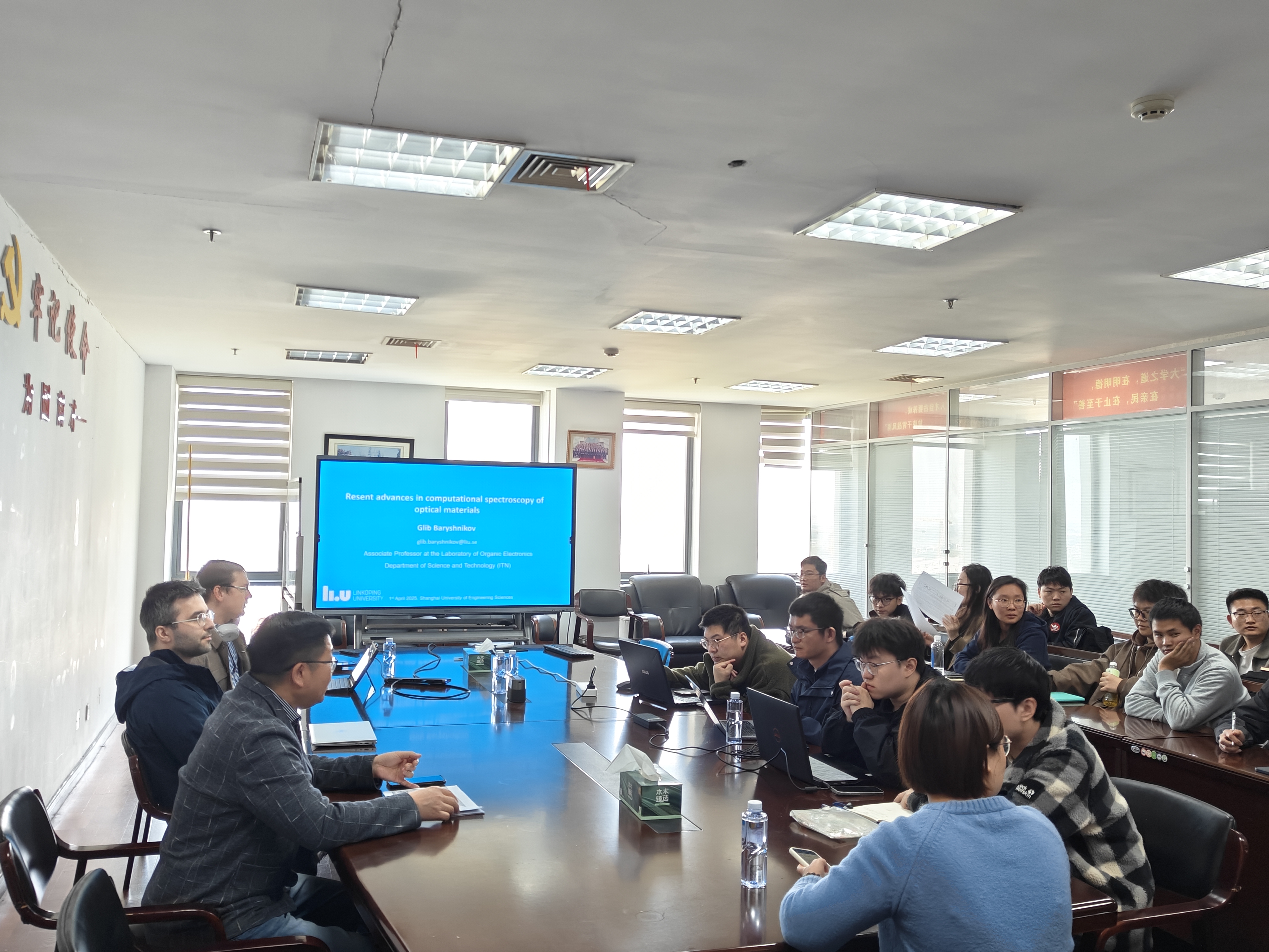 On April 1, 2025, Professor Glib Baryshnikov, a renowned scholar from Linkoping University in Sweden, came to the School of Mathematics, Physics and Statistics to give a presentation titled " Resent advances in computational spectroscopy of optical materials". Faculty members in the fields of physics, optical engineering, and all graduate students, and undergraduate students in optoelectronic information science and engineering attended the report.