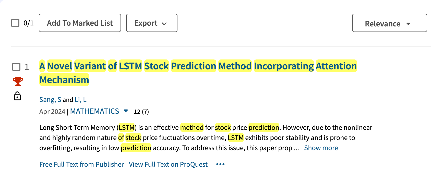 Recently,the research result "A Novel Variant of LSTM Stock Prediction Method Incorporating Attention Mechanism " published in the journal “Mathematics” (JCR SCI Zone 1 journal) under the guidance of Prof. Li Lu has been selected as an ESI highly cited paper for 2023-2024.